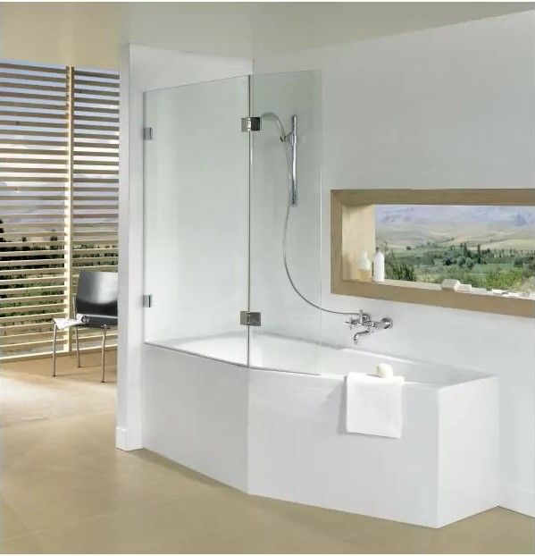 Ванна сужается по направлению к сливному отверстию, на внешней части встроенная удобная ручка. Возможная комплектация шторкой.
