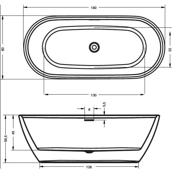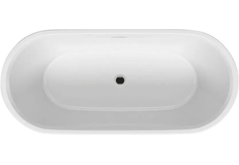 Отдельно стоящая, глянцевая белая акриловая ванна RIHO Inspire 180х80 с двойными стенками, со встроенным переливом и нажимным донным клапаном.
