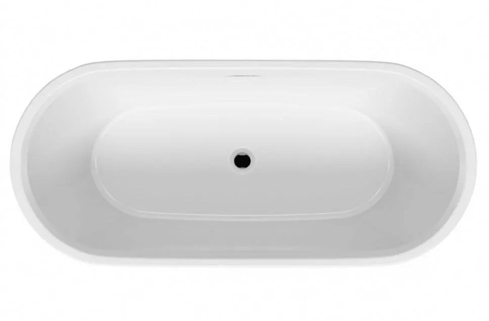 Отдельно стоящая, глянцевая белая акриловая ванна RIHO Inspire 160х75 FALL (заполнение через перелив) с двойными стенками, со встроенным переливом и нажимным донным клапаном.