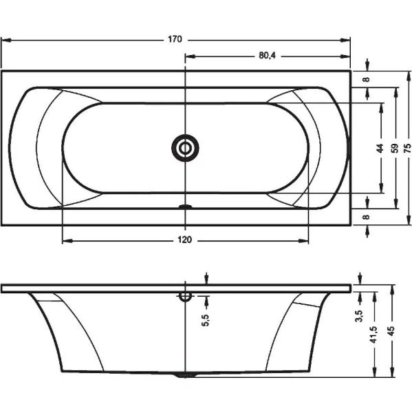 Акриловая ванна RIHO Lima 170x75 изготовлена из высококачественного листа акрила белого цвета, полностью армирована.