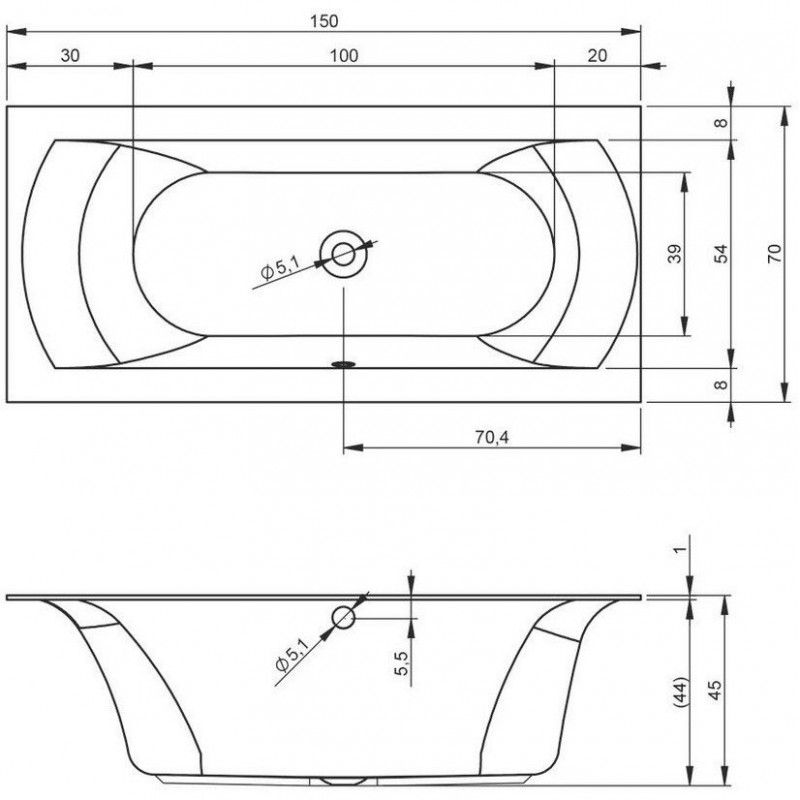 Слив-перелив расположен по центру ванны.