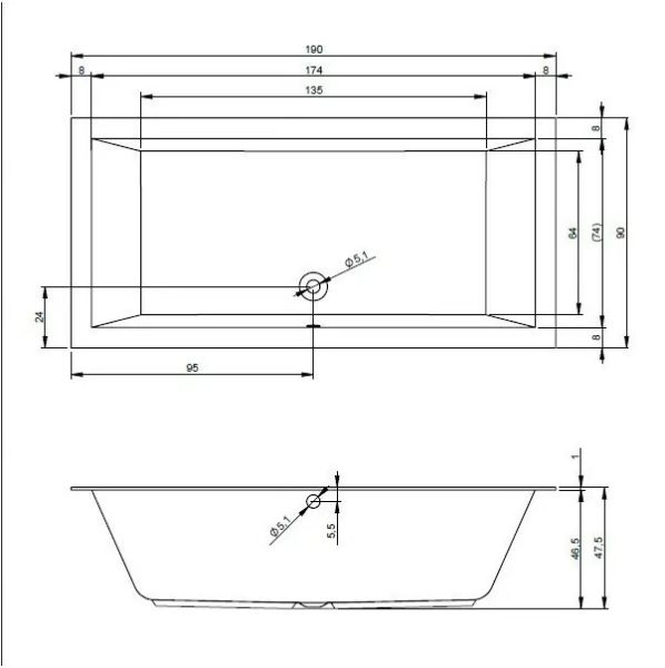 Материал непористый и гладкий, поэтому на нём не остаются известковый налёт и бактерии, поверхность ванны легко очищается.