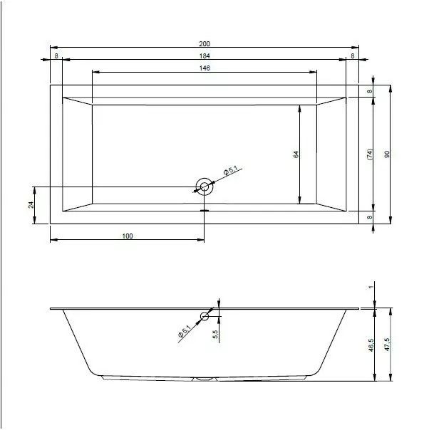 Акриловая ванна RIHO Lugo 200x90 изготовлена из высококачественного листа акрила белого цвета, полностью армирована.