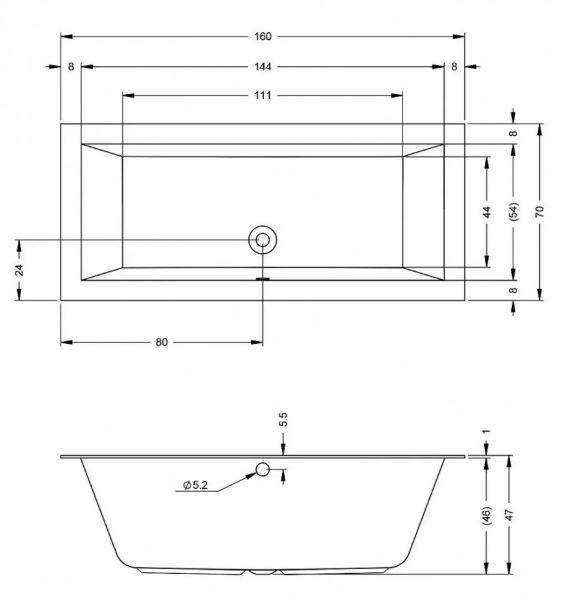 Акриловая ванна RIHO Lugo 160x70 изготовлена из высококачественного листа акрила белого цвета, полностью армирована.