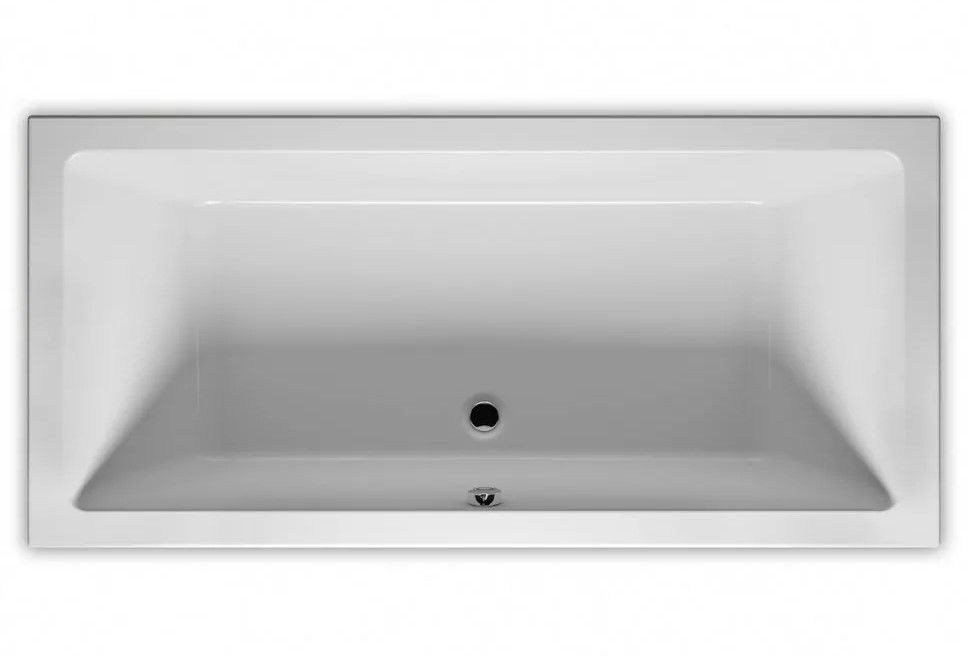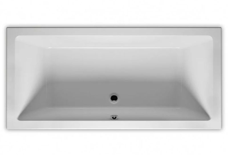 Прямоугольная? ванна RIHO Lugo 190x80 R Plug & Play, из глянцевого белого акрила с прямыми симметричными спинками, гладкой внутренней формой и центральным сливом, представляет собой полностью собранную на заводе конструкцию.
