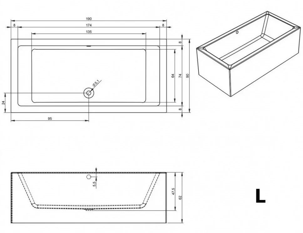 Прямоугольная? ванна RIHO Lugo 190x90 L Plug & Play, из глянцевого белого акрила с прямыми симметричными спинками, гладкой внутренней формой и центральным сливом, представляет собой полностью собранную на заводе конструкцию.