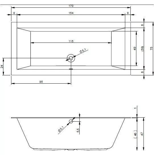 Акриловая ванна RIHO Lugo Velvet 170x75 изготовлена из высококачественного листа акрила матового белого цвета, полностью армирована.