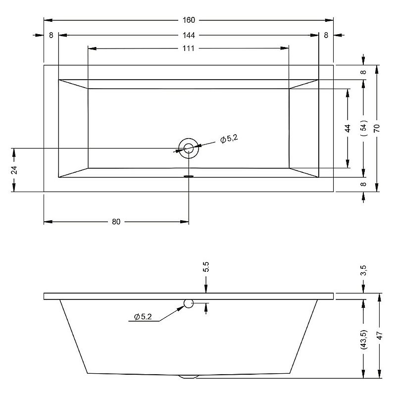 Стандартные размеры, см:160x70