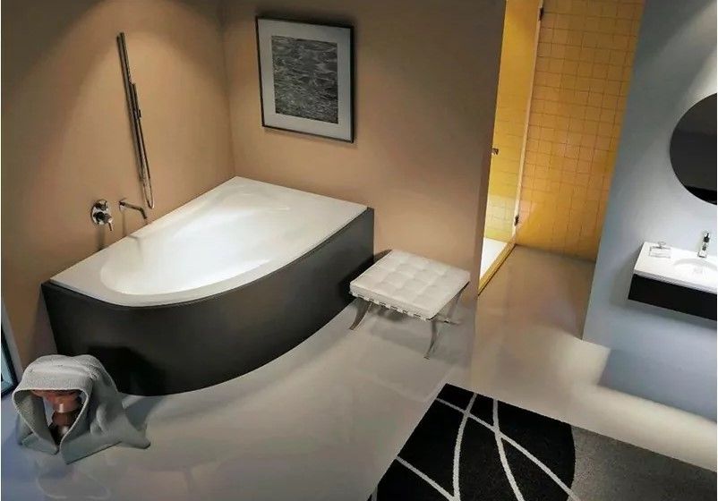 Материал непористый и гладкий, поэтому на нём не остаются известковый налёт и бактерии, поверхность ванны легко очищается.