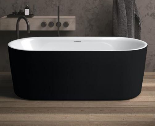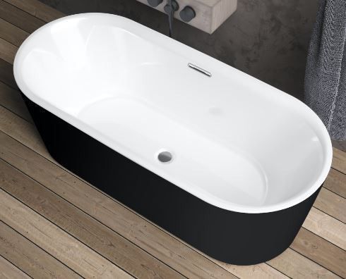 Отдельно стоящая чёрная/белая матовая ванна RIHO Modesty 170х76 BLACK VELVET достойна своего названия: ванна сочетает в себе роскошный внешний вид с комфортом и удобством для пользователя, не будучи эксцентричной. Это ванна овальной формы с красивым тонким бортиком.