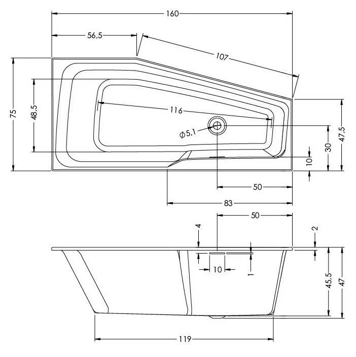 Асимметричная ванна RIHO RETHINK Space 160x75 L PLUG & PLAY, из глянцевого белого акрила с тонкими бортами и большим внутренним пространством, сливом Push-Open и щелевым переливом, представляет собой полностью собранную на заводе конструкцию.