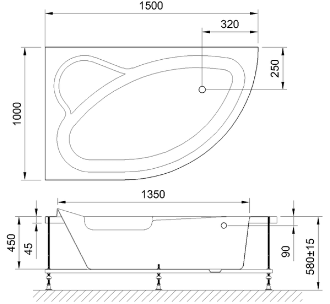 Акриловая угловая ванна ALPINE 150x100x58 имеет ассиметричную форму с четкими линиями изгибов что позволяет ей отлично гармонировать практически в любом интерьере. Анатомическая, округлая форма чаши позволяет комфортно разместиться в ней одному человеку, а диагональное расположение позволяет разместить в углу просторное сидение.