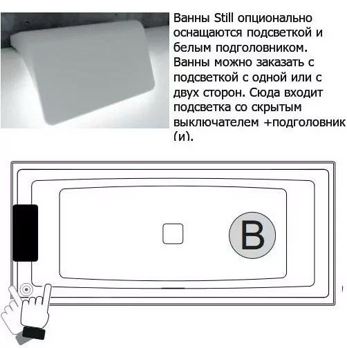 Акриловая ванна с подсветкой Riho Still Square LED B100004005 170х75см светодиоды и подголовник слева белый