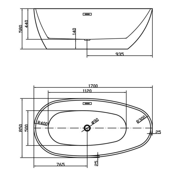 Акриловая ванна Swedbe Vita 8806 170x85см белый