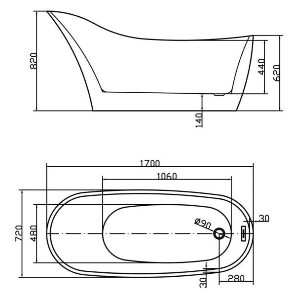 Акриловая ванна Swedbe Vita 8820 170x72см белый