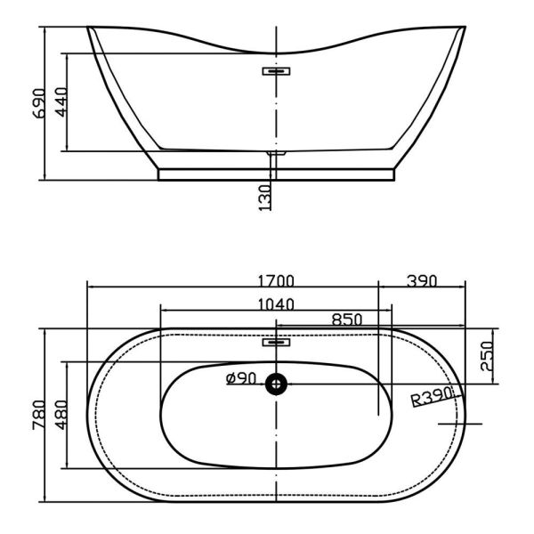 Акриловая ванна Swedbe Vita 8835 170x78см белый