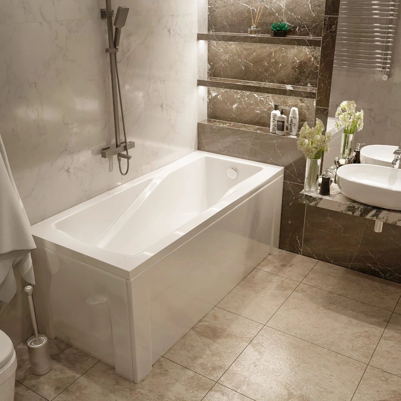 При изготовлении ванн TIMO используется европейский акриловый лист GEBAU ACRYLIC, что обеспечивает изделиям глубокий белый цвет, высокий глянец поверхности и хорошую УФ-стойкость. Формовка чаш ванн осуществляется на новейшем европейском вакуум-формовочном оборудовании, благодаря чему акриловая форма имеет одинаковую толщину по всей поверхности. Алюминиевые термостатированные пресс-формы обеспечивают идеально ровную геометрию изделий. Эргономика ванны адаптирована под российского потребителя: увеличена глубина и ширина посадочного места. Для укрепления изделий применяется современная технология – укрепление стеклоровингом. Армирующее покрытие наносится в несколько слоев, что обеспечивает равномерное распределение армировки по поверхности чаши. Дно ванн TIMO дополнительно усиливается цельной закладной из ДСП 16 мм. Все это позволяет выдерживать нагрузку до 800 кг. Современная ванная комната, главным обьектом которой, станет акриловая ванна TIMO не оставит равнодушным даже самого требовательного пользователя.