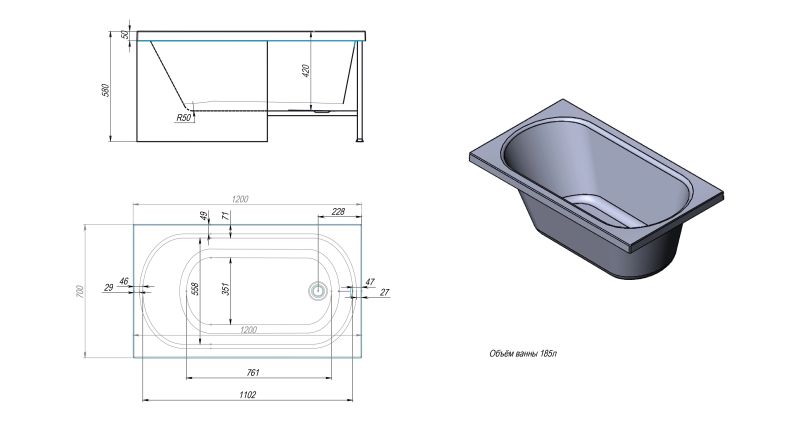 Акриловая ванна Timo Roha ROHA1270 120x70 см
