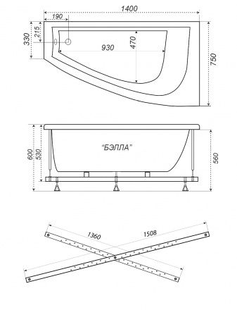 Акриловая ванна Triton Бэлла 140x75 левая с каркасом