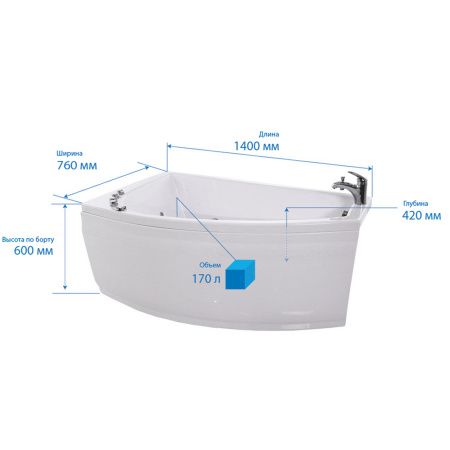 Акриловая ванна Triton Бриз R 140 см с каркасом (снято с пр-ва)
