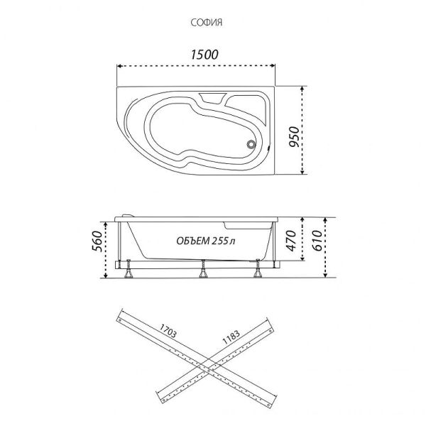 Акриловая ванна Triton София Щ0000067270 150x95 см R белый