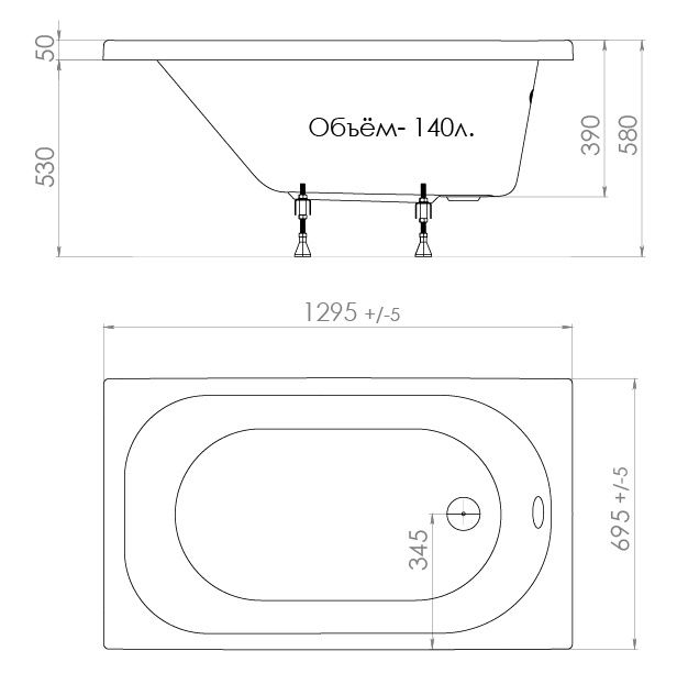 Акриловая ванна Triton Стандарт 130x70 см