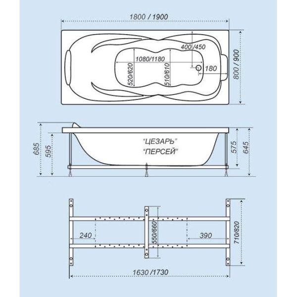 Акриловая ванна Triton Цезарь 180x80 с каркасом