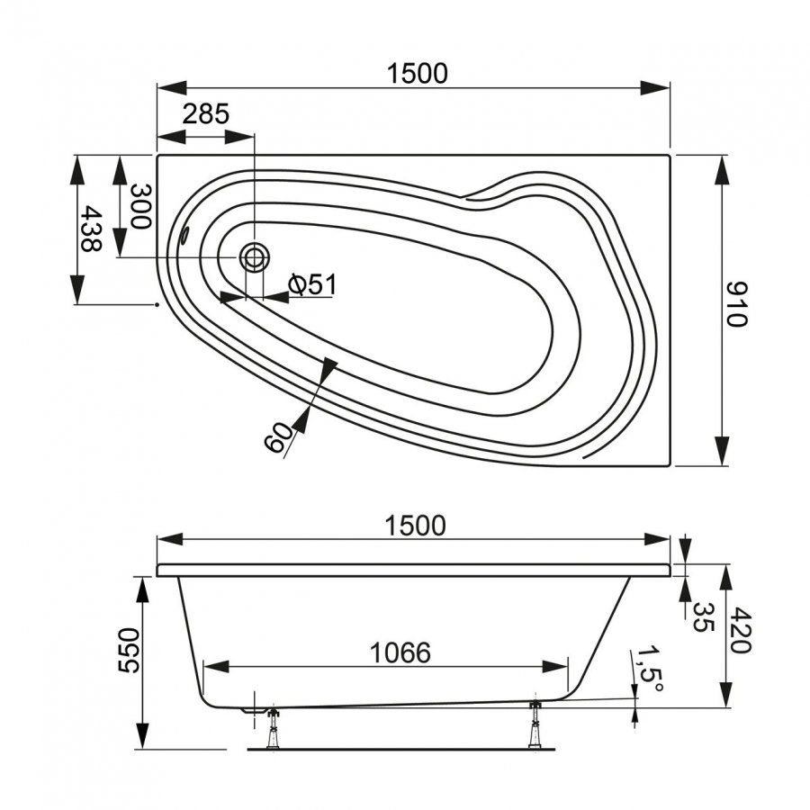 Акриловая ванна VagnerPlast Avona VPBA159AVO3LX-04 левая 150x90см белый