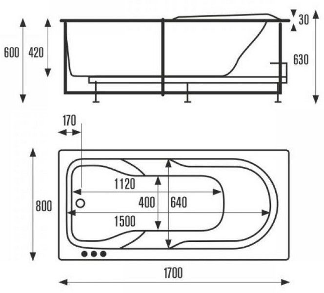 Стандартные размеры, см:170x70