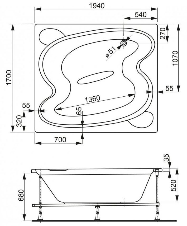 Акриловая ванна VagnerPlast Helios VPBA197HEL2X-04 194x170см белый
