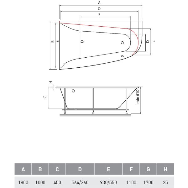 Высота ванны на каркасе: 61 см.