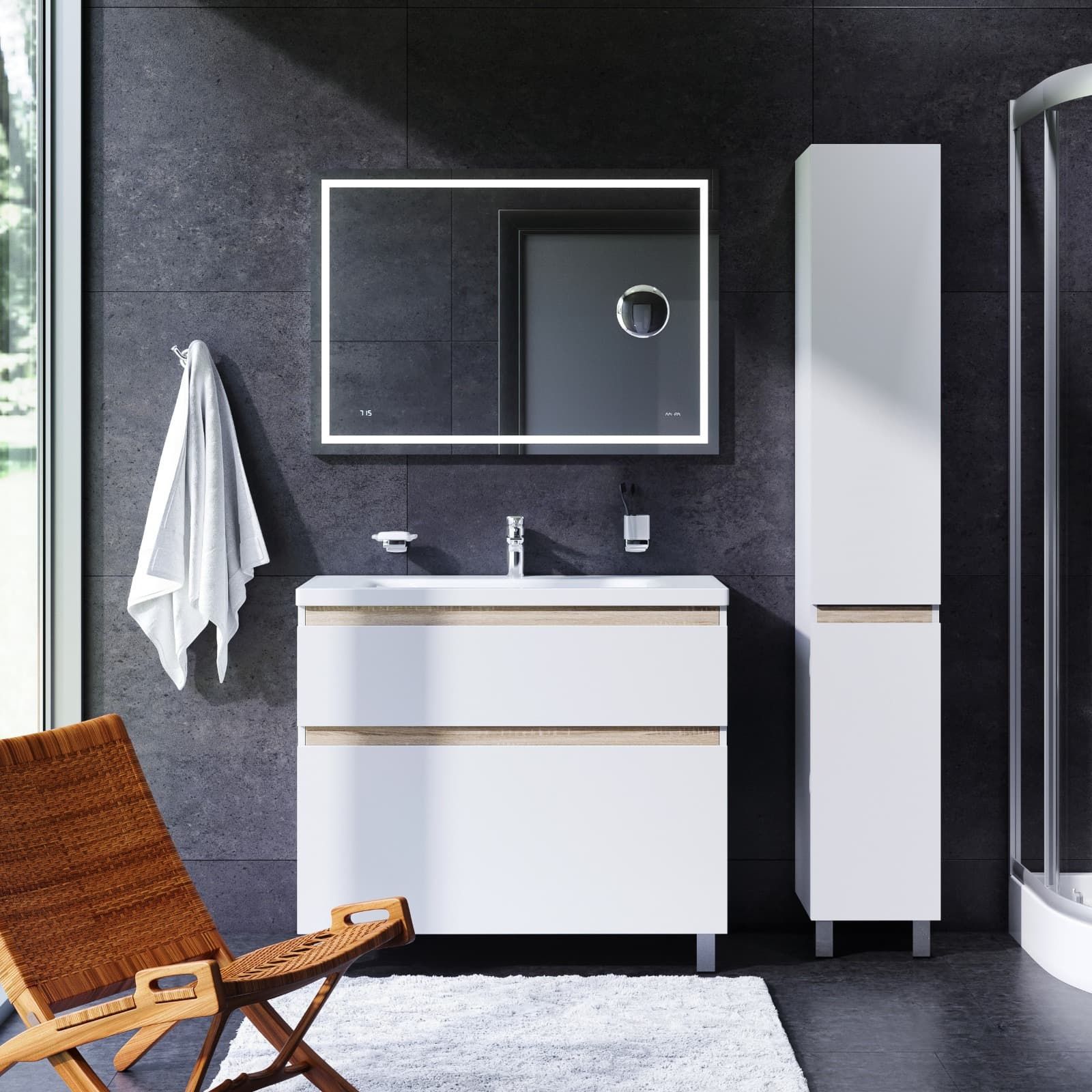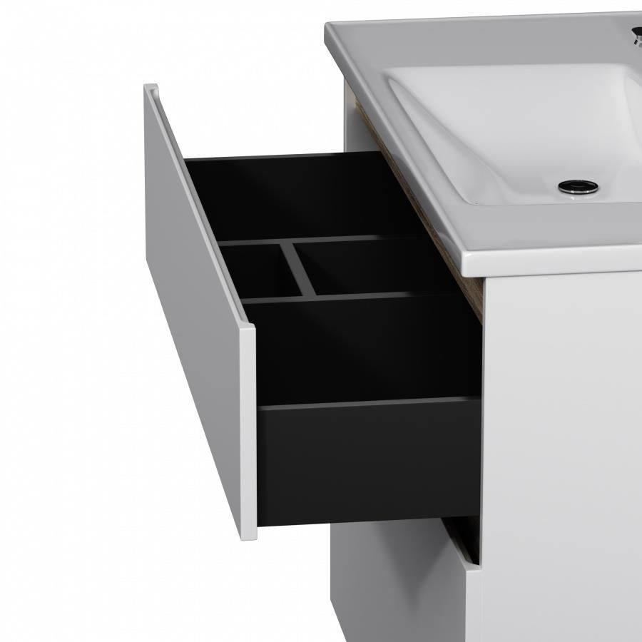 может позволит себе каждый. Самое эстетичное сочетание цветов и фактур от дизайн-бюро Danelon Meroni (Великобритания & Италия): белые глянцевые фасады дополнены отделкой под светлое дерево.Функциональный органайзер в первом ящике позволит хранить необходимые косметические средства под рукой и в полном порядке. Внутреннее покрытие каждого ящика выполнено в современном