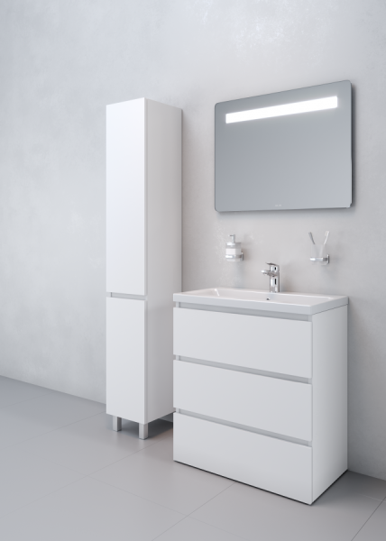 Современный европейский дизайн от DanelonMeroni (Великобритания/Италия). Уникальный нижний ящик базы может быть использован как: выдвижная подставка для детей, для удобного мытья рук (выдерживает нагрузку до 60 кг); дополнительная ниша для хранения (экономия пространства ванной комнаты).