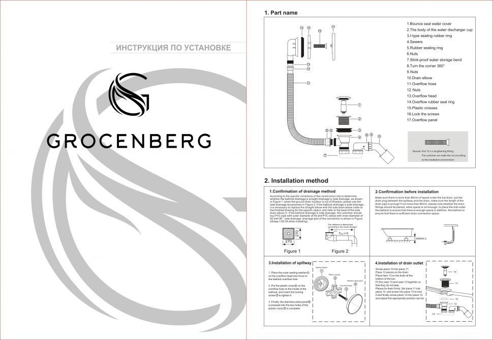 Слив-перелив для ванны GROCENBERG купить в интернет-магазине "Gidro-butik" с гарантией от производителя Большой выбор.  Низкие цены Быстрая доставка по Москве и Московской области.