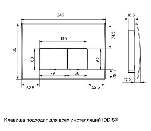 Универсальный бачок с верхним подводом воды и фронтальным расположением клавиши смыва для комплектации напольных унитазов. В комплекте черная клавиша с двумя кнопками – для полного и экономичного смыва.