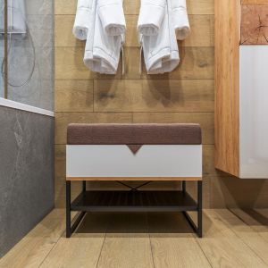 Материал корпуса - ДСП с покрытием ламинат, что делает ее легкой в уходе и долговечной. Мягкое сиденье обито качественной тканью, что обеспечивает комфорт при использовании. Ножки обеспечивают надежную поддержку, а система хранения с дверками позволяет удобно хранить различные мелочи.