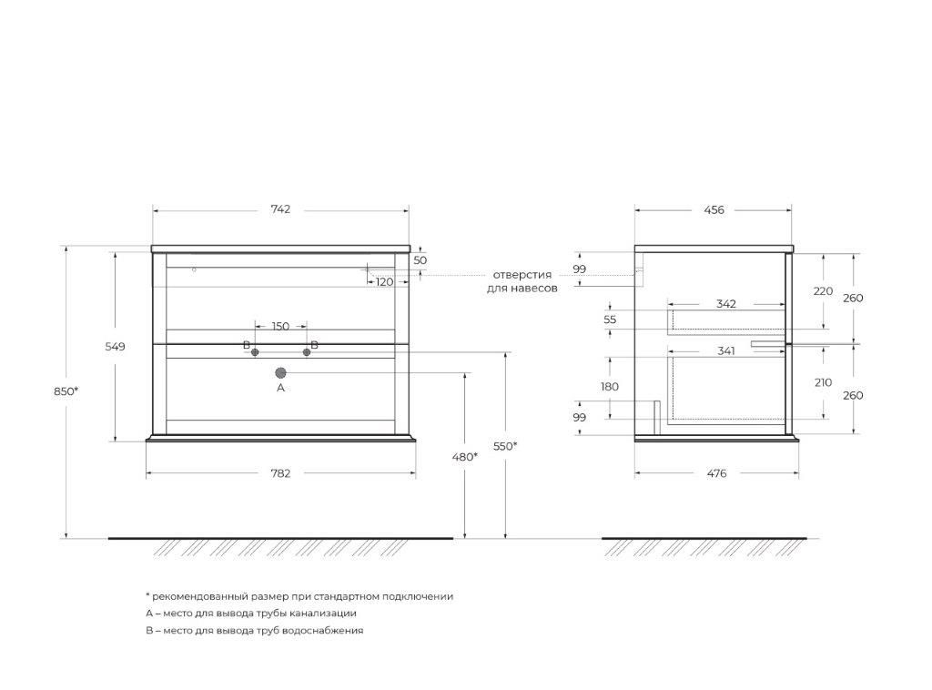 База CEZARES подвесная под раковину с двумя выдвижными ящиками, 74x46x55 купить