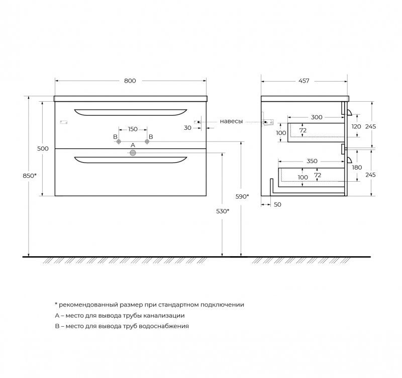 База под раковину Cezares подвесная с двумя выкатными ящиками, Sapfiro, 800x457x500, ECO-CER-N-800-2C-SO-SPF-P купить