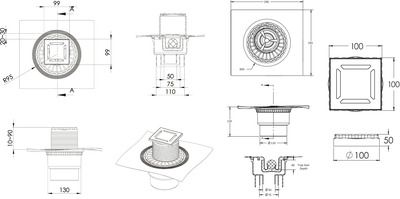 Решетка толщина 3мм, нержавеющая сталь AISI 304 Горловина трапа и эксцентрик, пластик Монтажная заглушка, PP Сифон PP с гидроизоляцией: вертикальный выпуск D50/70/100, монтаж 360° Комбинированный гидрозатвор Фланец с 3 сторон загибается на 90° Монтажный ключ, пластикДушевой трап Berges Wasserhaus Zentrum Norma 090462 10х10 Матовый хром – является надежным дренажным устройством в составе современной системы водоотведения. Страна изготовления – Германия, коллекция Zentrum Norma.Berges Wasserhaus Zentrum Norma 090462 10х10 Матовый хром выполнен в одном корпусе с гидрозатвором, благодаря чему достигается герметичность изделия и создается надежный барьер против запахов из системы канализации. Входная решетка квадратной формы является одним из наиболее удачных вариантов в том случае, когда Душевой трап Berges Wasserhaus необходимо интегрировать в плиточную отделку пола. Видимая часть конструкции изготовлена из полированной нержавеющей стали, которая отлично сочетается с другими элементами коллекции Zentrum Norma. Габаритные размеры изделия составляют 26.50х29.00 см при максимальной длине и ширине внешней части 10.0х10.0 см. Дренажное устройство производства Berges Wasserhaus имеет минимальную высоту – тем самым достигается простота установки путем встраивания в пол ванной. Конструкцией предусмотрен вертикальный выпуск сточных вод. Этим достигается высокая пропускная способность лотка Berges Wasserhaus Zentrum Norma 090462 10х10 Матовый хром и возможность монтажа в любом месте, независимо от схемы разводки канализационных труб. Пластик, из которого сделан патрубок и элементы слива дренажного устройства Berges Wasserhaus, не боится вредного воздействия влаги, бытовой химии, высокой температуры и прочих разрушающих факторов. Хром матовый цвет наружной решетки лотка Berges Wasserhaus прекрасно сочетается с другими элементами коллекции Zentrum Norma.