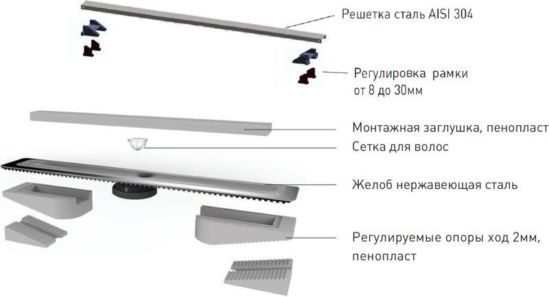Душевой лоток Berges Wasserhaus C1 Brise 090131 60 Матовый хром – является надежным дренажным устройством в составе современной системы водоотведения. Страна изготовления – Германия, коллекция C1 Brise.Berges Wasserhaus C1 Brise 090131 60 Матовый хром выполнен в одном корпусе с гидрозатвором, благодаря чему достигается герметичность изделия и создается надежный барьер против запахов из системы канализации. Прямоугольную форму решетки сантехнического устройства Berges Wasserhaus можно удачно обыграть при установке устройства вдоль стен, рядом с перегородкой и т.д. Видимая часть конструкции изготовлена из полированной нержавеющей стали, которая отлично сочетается с другими элементами коллекции C1 Brise. Габаритные размеры изделия составляют 69.50х12.10 см при максимальной длине и ширине внешней части 60.0х4.4 см. Дренажное устройство производства Berges Wasserhaus имеет минимальную высоту – тем самым достигается простота установки путем встраивания в пол ванной. Конструкция имеет горизонтальный выпуск для прямого вывода стоков в канализацию. Высокая пропускная способность делает лоток Berges Wasserhaus C1 Brise 090131 60 Матовый хром одним из лучших вариантов при эксплуатации как в частных домовладениях, так и помещениях коммерческого назначения – банях, душевых спортзалов и т.д. Пластик, из которого сделан патрубок и элементы слива дренажного устройства Berges Wasserhaus, не боится вредного воздействия влаги, бытовой химии, высокой температуры и прочих разрушающих факторов. Хром матовый цвет наружной решетки лотка Berges Wasserhaus прекрасно сочетается с другими элементами коллекции C1 Brise.