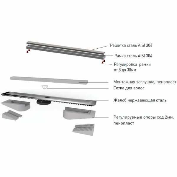 Душевой лоток Berges Wasserhaus B1 Keramik 091120 90 Хром глянец – является надежным дренажным устройством в составе современной системы водоотведения. Страна изготовления – Германия, коллекция B1 Keramik.Berges Wasserhaus B1 Keramik 091120 90 Хром глянец выполнен в одном корпусе с гидрозатвором, благодаря чему достигается герметичность изделия и создается надежный барьер против запахов из системы канализации. Прямоугольную форму решетки сантехнического устройства Berges Wasserhaus можно удачно обыграть при установке устройства вдоль стен, рядом с перегородкой и т.д. Видимая часть конструкции изготовлена из полированной нержавеющей стали, которая отлично сочетается с другими элементами коллекции B1 Keramik. Габаритные размеры изделия составляют 99.50х12.10 см при максимальной длине и ширине внешней части 90.0х6.1 см. Дренажное устройство производства Berges Wasserhaus имеет минимальную высоту – тем самым достигается простота установки путем встраивания в пол ванной. Конструкция имеет горизонтальный выпуск для прямого вывода стоков в канализацию. Высокая пропускная способность делает лоток Berges Wasserhaus B1 Keramik 091120 90 Хром глянец одним из лучших вариантов при эксплуатации как в частных домовладениях, так и помещениях коммерческого назначения – банях, душевых спортзалов и т.д. Пластик, из которого сделан патрубок и элементы слива дренажного устройства Berges Wasserhaus, не боится вредного воздействия влаги, бытовой химии, высокой температуры и прочих разрушающих факторов. Хром цвет наружной решетки лотка Berges Wasserhaus прекрасно сочетается с другими элементами коллекции B1 Keramik.