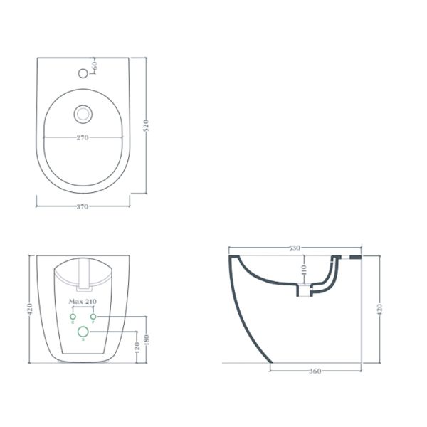 Биде Artceram File 2.0 FLB004 17 00 черноеARTCERAM FILE 2.0 Биде напольное 37х52 см, 1 отверстие, цвет черный матовый/покрытие Saniglaze