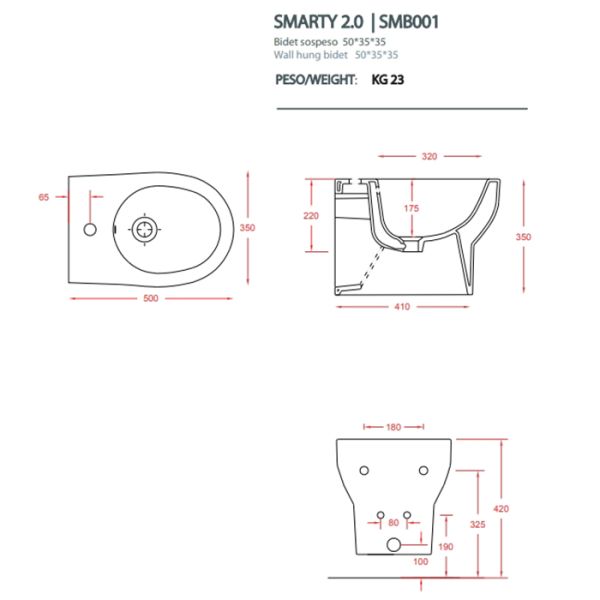 Биде Artceram HIDRA SMARTY SMB001 01 00 белоеARTCERAM SMARTY Биде подвесное 35х50 см, с 1 отв под смеситель, цвет белый