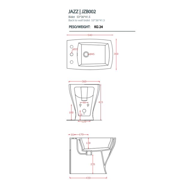 Биде Artceram JAZZ JZB002 01 00*3JZ04bi*3 белоеArtceram JAZZ биде напольное 54*36см с 3 отв под смеситель с креплением, цвет белый