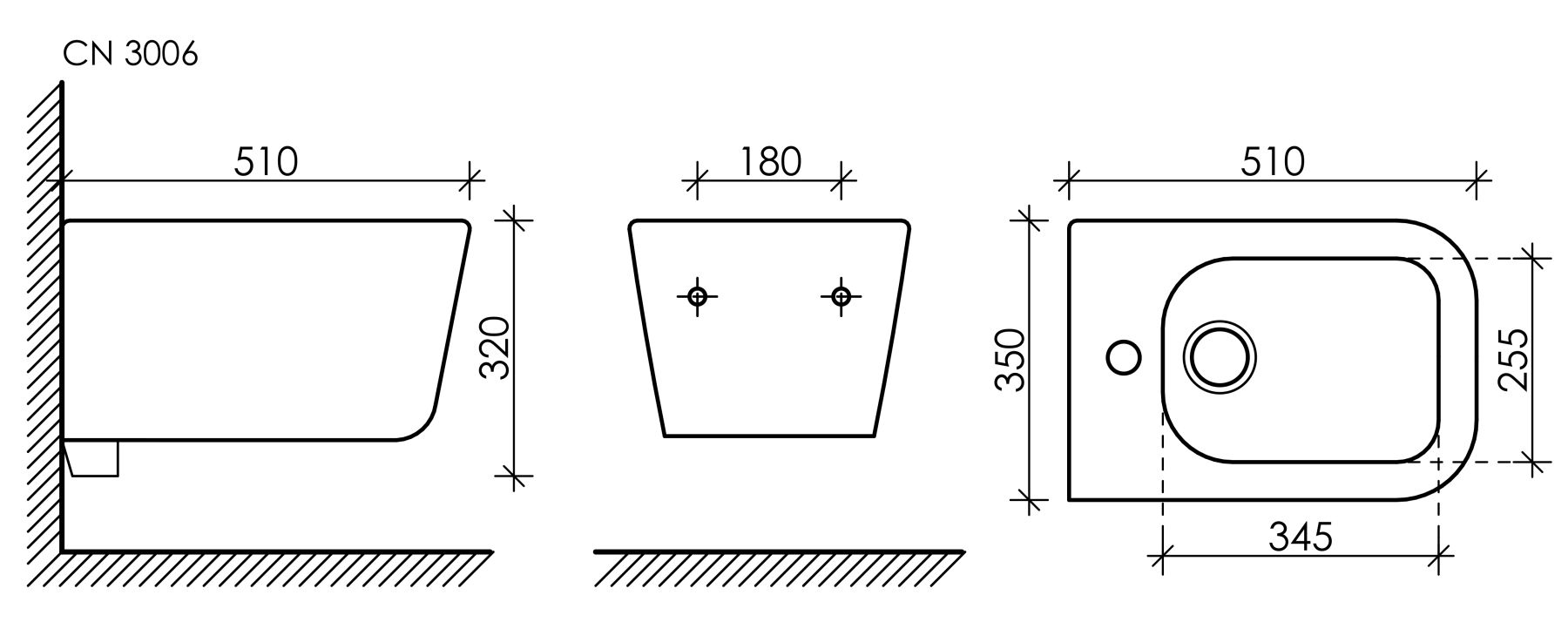 Подвесное биде New Day, 1 отверстие под смеситель, с крепежом для полностью скрытого монтажа. В комплекте донный клапан с керамической накладкой