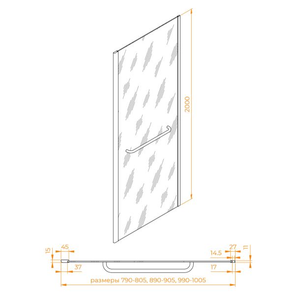 Комплектуется с моделями высотой 2000 мм и цветом профиля «хром». Подходит к моделя... Подробнее