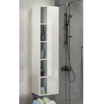 Название: Шкаф-колонна Артикул: Милан 40 (правая) Варианты цвета: Белый глянец Материал: влагостойкое ЛДСП Габариты ШхВхГ: 400*1600*320 Подвесная шкаф-колонна с одной распашной дверью и пространством для открытого хранения. Створка оборудована петлями с системой плавного закрывания. За створкой три горизонтальные полки.