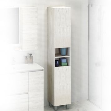 Напольная шкаф-колонна отличное решение для хранения разных предметов необходимых в ванной комнате. За дверцами по одной горизонтальной полке. Петли створок можно установить как справа, так и слева