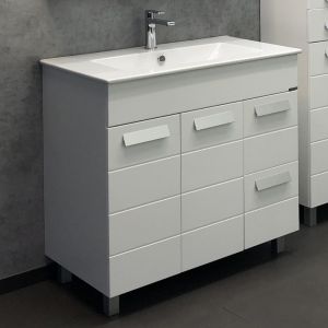 Тумба с раковиной Comfortу Модена M-90, напольная, белый матовый, раковина Quadro 90 белая, 00-00001644Тумба с раковиной