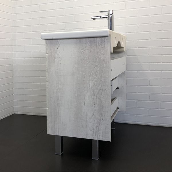 Тумба Comfortу Никосия-70Н с раковиной Como 70, дуб белый, 00-00005793Напольная тумба-умывальник с тремя выкатными ящиками. Ящики оснащены доводчиками для плавного закрывания. Корпус и фасады тумбы из влагостойкого ДСП актуальной фактуры "Дуб белый" с имитацией натурального дерева. Тумба укомплектована прямоугольной раковиной из санитарного фарфора и четырьмя ножками. Тумба подготовлена для подключения водоснабжения снизу.Основные характеристики:Монтаж: напольный